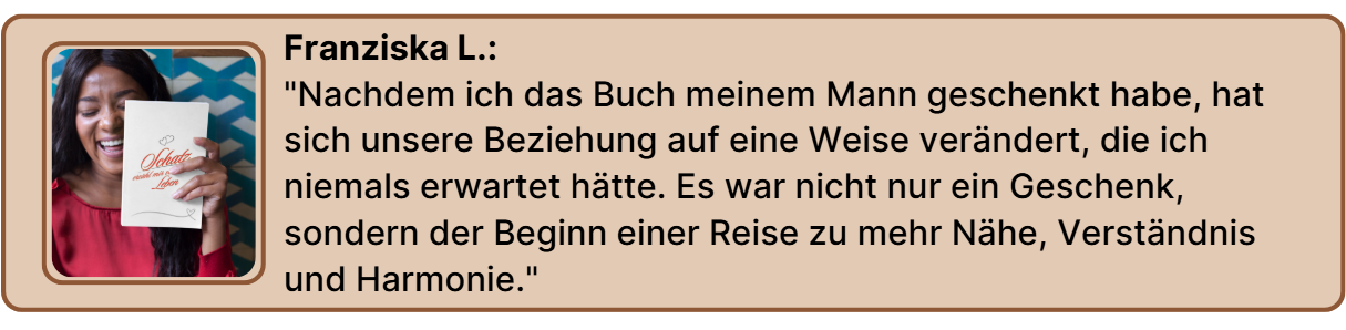 Questo libro unisce le coppie in modo speciale, favorisce momenti di intimità e le aiuta a riscoprirsi a vicenda. Porta nuovo slancio alla relazione e apre possibilità inimmaginabili di vicinanza e comprensione.